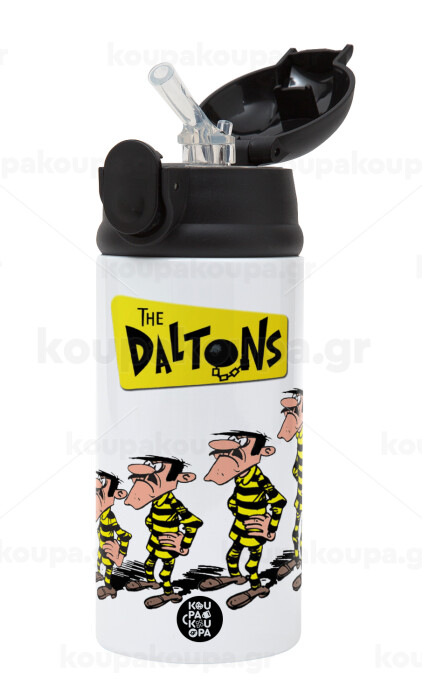 The Daltons, Children's hot water bottle, stainless steel, with safety straw, Black (360ml) BPA-FREE
