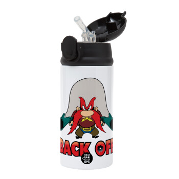 Yosemite Sam Back OFF, Children's hot water bottle, stainless steel, with safety straw, Black (360ml) BPA-FREE