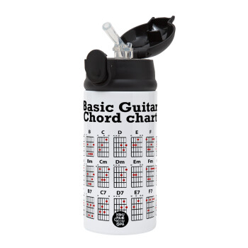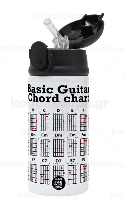 Guitar tabs, Children's hot water bottle, stainless steel, with safety straw, Black (360ml) BPA-FREE