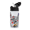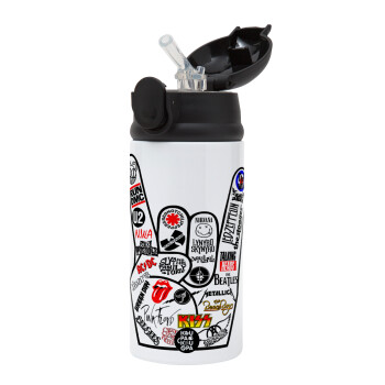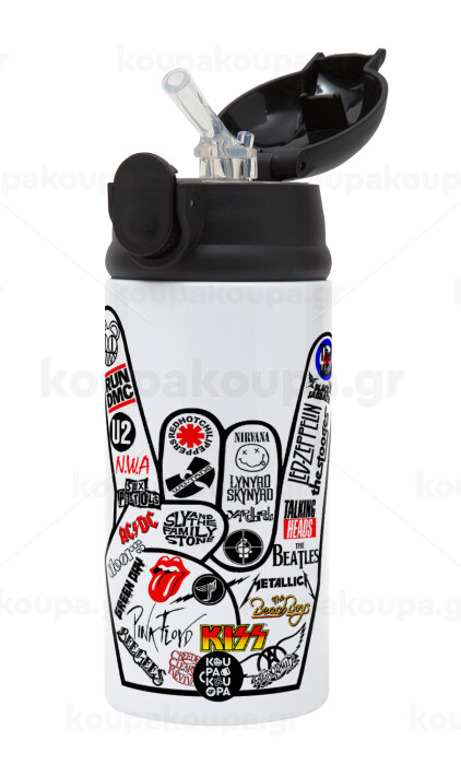 Best Rock Bands hand, Children's hot water bottle, stainless steel, with safety straw, Black (360ml) BPA-FREE