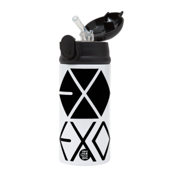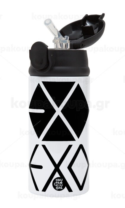 EXO Band korea, Children's hot water bottle, stainless steel, with safety straw, Black (360ml) BPA-FREE