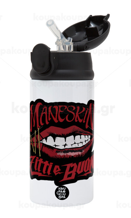 Maneskin lips, Children's hot water bottle, stainless steel, with safety straw, Black (360ml) BPA-FREE
