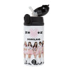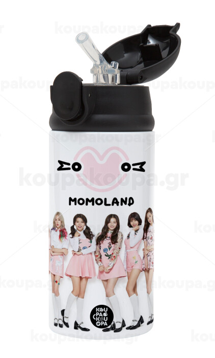 Momoland pink, Children's hot water bottle, stainless steel, with safety straw, Black (360ml) BPA-FREE