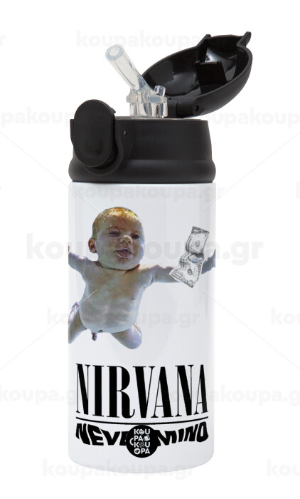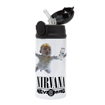 Nirvana nevermind, Children's hot water bottle, stainless steel, with safety straw, Black (360ml) BPA-FREE