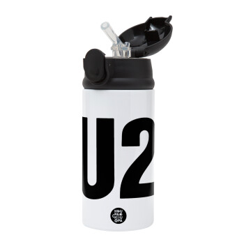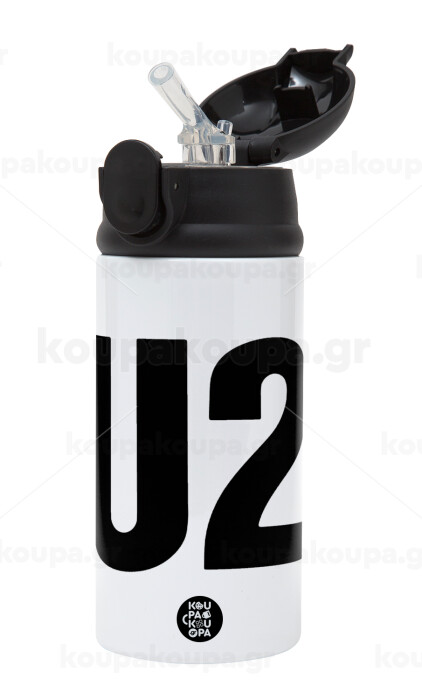 U2 , Children's hot water bottle, stainless steel, with safety straw, Black (360ml) BPA-FREE