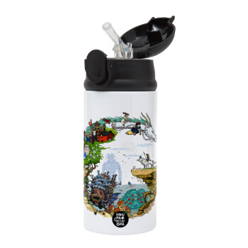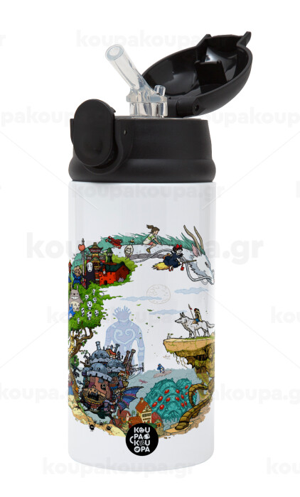 Στούδιο Γκίβλι, Children's hot water bottle, stainless steel, with safety straw, Black (360ml) BPA-FREE