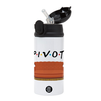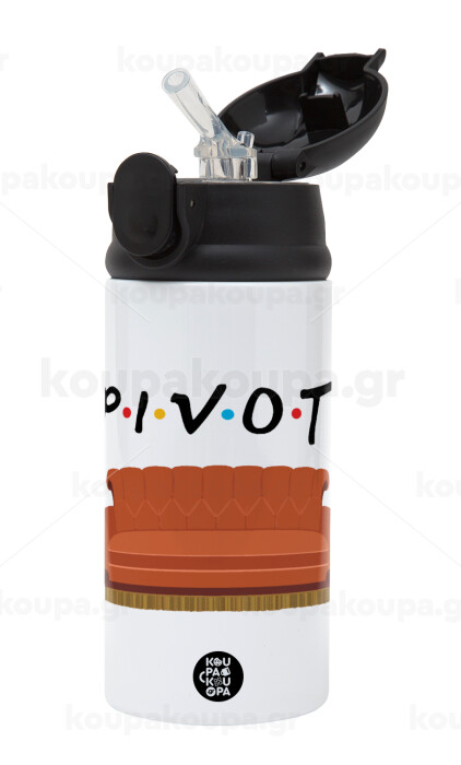 Friends Pivot, Children's hot water bottle, stainless steel, with safety straw, Black (360ml) BPA-FREE