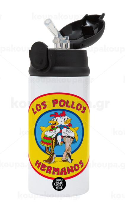 Los Pollos Hermanos, Children's hot water bottle, stainless steel, with safety straw, Black (360ml) BPA-FREE