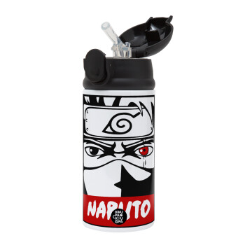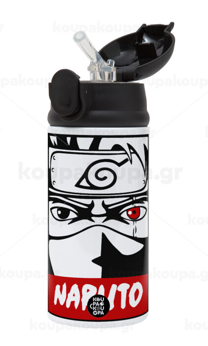 Naruto anime, Children's hot water bottle, stainless steel, with safety straw, Black (360ml) BPA-FREE