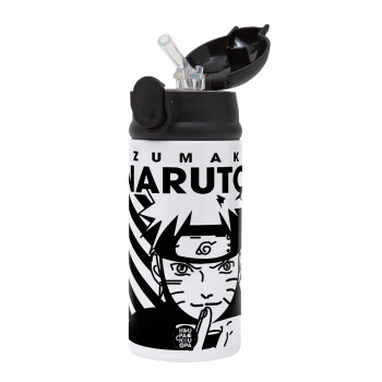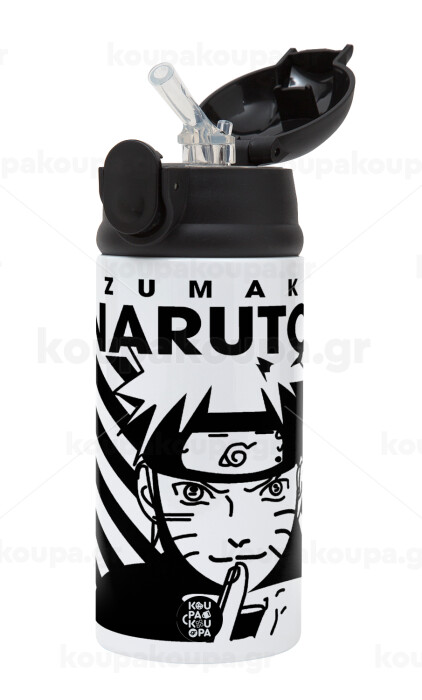 Naruto uzumaki, Children's hot water bottle, stainless steel, with safety straw, Black (360ml) BPA-FREE