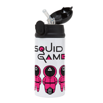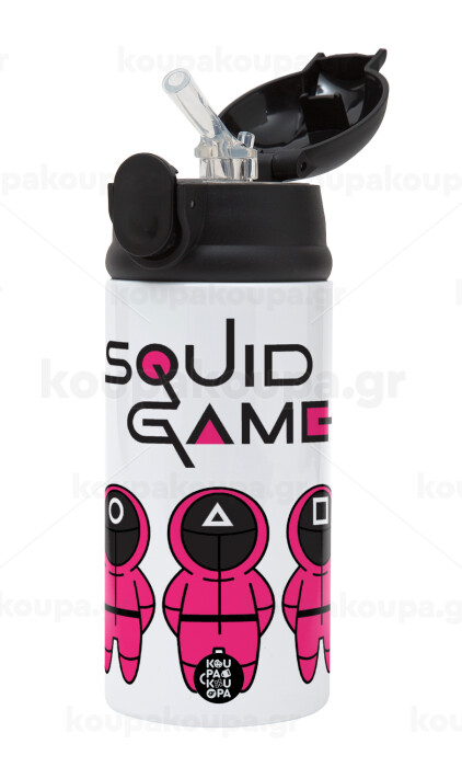The squid game characters, Children's hot water bottle, stainless steel, with safety straw, Black (360ml) BPA-FREE