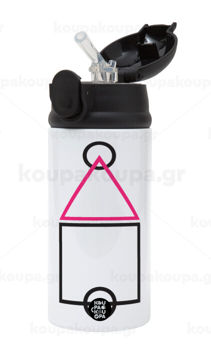 The squid game ojingeo, Children's hot water bottle, stainless steel, with safety straw, Black (360ml) BPA-FREE