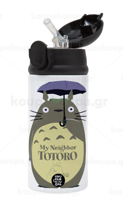 Totoro from My Neighbor Totoro, Children's hot water bottle, stainless steel, with safety straw, Black (360ml) BPA-FREE