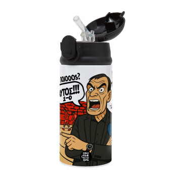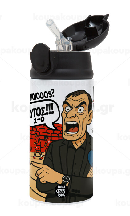 Μπαρτζό, Ποιος? Αυτός!!! 1-0, Children's hot water bottle, stainless steel, with safety straw, Black (360ml) BPA-FREE
