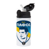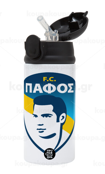 Πάφος FC, Children's hot water bottle, stainless steel, with safety straw, Black (360ml) BPA-FREE