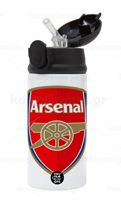 Arsenal, Children's hot water bottle, stainless steel, with safety straw, Black (360ml) BPA-FREE