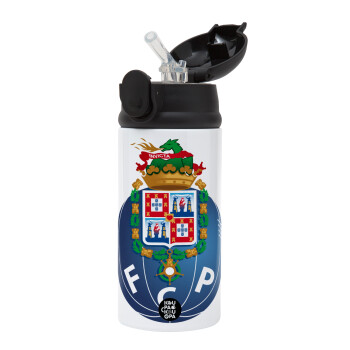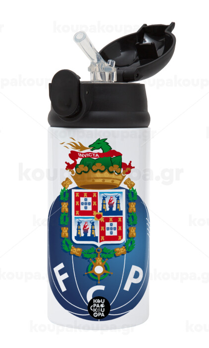 FCP, Children's hot water bottle, stainless steel, with safety straw, Black (360ml) BPA-FREE