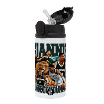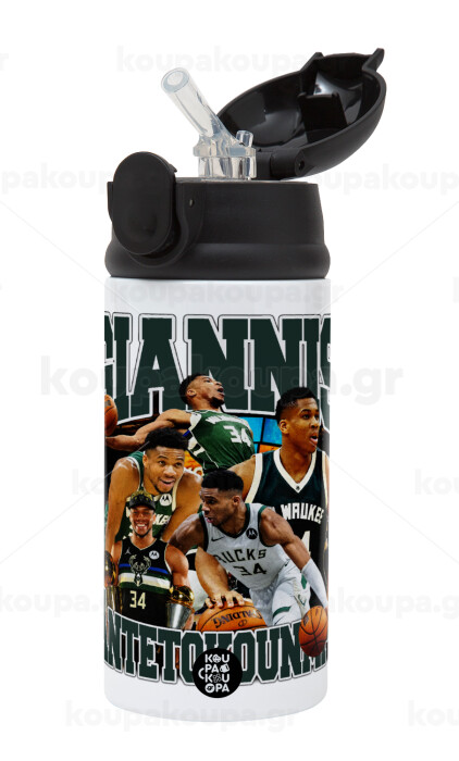 Giannis Antetokounmpo, Children's hot water bottle, stainless steel, with safety straw, Black (360ml) BPA-FREE