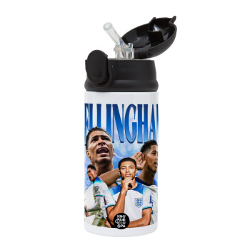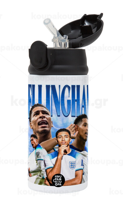 Jude Bellingham, Children's hot water bottle, stainless steel, with safety straw, Black (360ml) BPA-FREE
