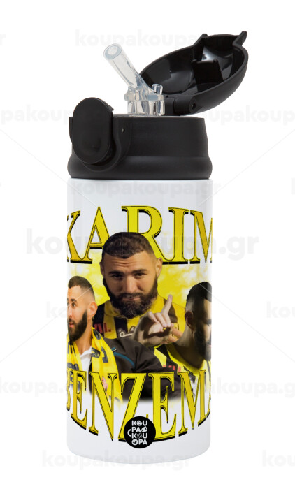 Karim Benzema, Children's hot water bottle, stainless steel, with safety straw, Black (360ml) BPA-FREE