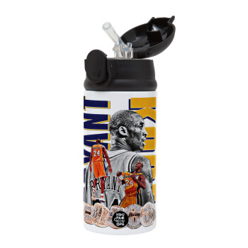 Kobe Bryant, Children's hot water bottle, stainless steel, with safety straw, Black (360ml) BPA-FREE