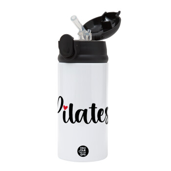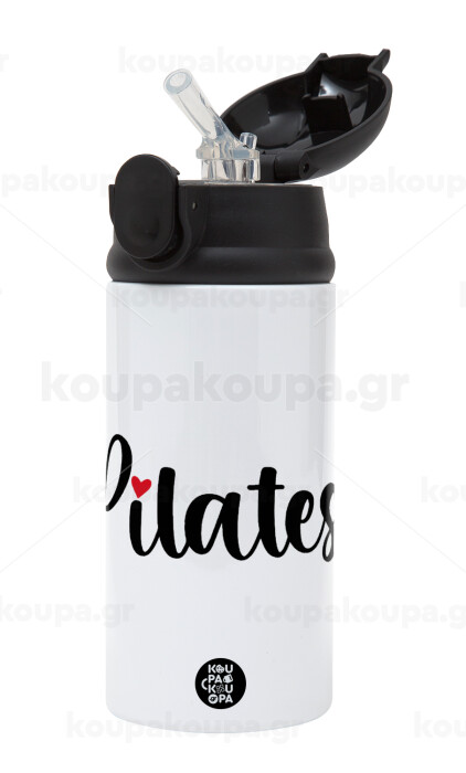 Pilates love, Children's hot water bottle, stainless steel, with safety straw, Black (360ml) BPA-FREE