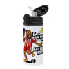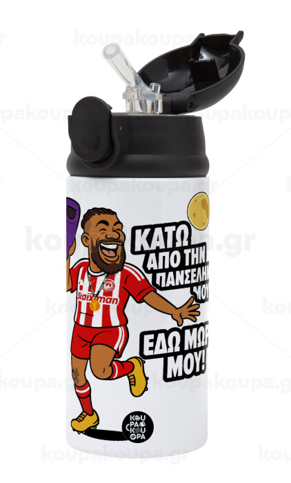 Ροντινέι, "ΚΑΤΩ ΑΠΟ ΤΗΝ ΠΑΝΣΕΛΗΝΟ ΜΟΥ!", Children's hot water bottle, stainless steel, with safety straw, Black (360ml) BPA-FREE