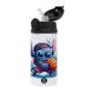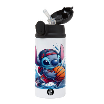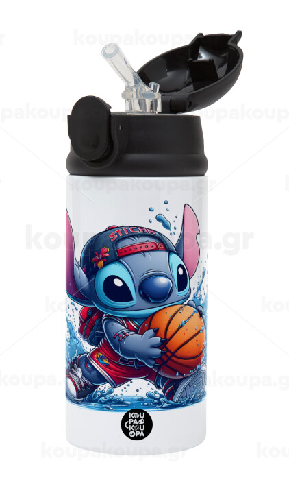 Stitch Basketball, Children's hot water bottle, stainless steel, with safety straw, Black (360ml) BPA-FREE