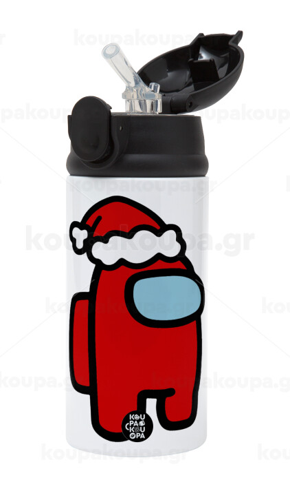 Among US Santa, Children's hot water bottle, stainless steel, with safety straw, Black (360ml) BPA-FREE