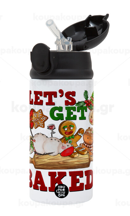 Let's get baked, Children's hot water bottle, stainless steel, with safety straw, Black (360ml) BPA-FREE