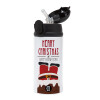 Merry christmas chimney, Children's hot water bottle, stainless steel, with safety straw, Black (360ml) BPA-FREE