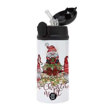Oh Christmas Night, Children's hot water bottle, stainless steel, with safety straw, Black (360ml) BPA-FREE