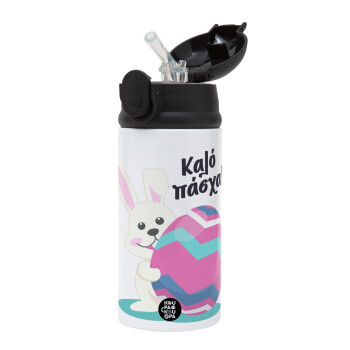 Καλό πάσχα, Children's hot water bottle, stainless steel, with safety straw, Black (360ml) BPA-FREE