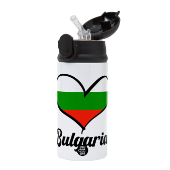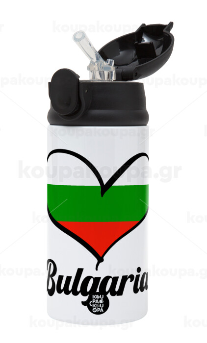 Bulgaria flag, Children's hot water bottle, stainless steel, with safety straw, Black (360ml) BPA-FREE