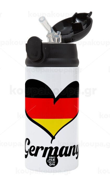 Germany flag, Children's hot water bottle, stainless steel, with safety straw, Black (360ml) BPA-FREE