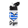 Greece flag, Children's hot water bottle, stainless steel, with safety straw, Black (360ml) BPA-FREE