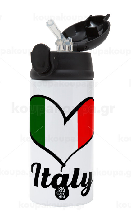 Italy flag, Children's hot water bottle, stainless steel, with safety straw, Black (360ml) BPA-FREE