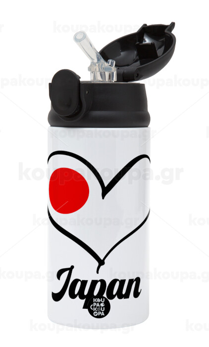 Japan flag, Children's hot water bottle, stainless steel, with safety straw, Black (360ml) BPA-FREE