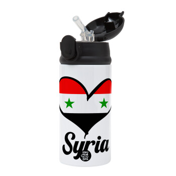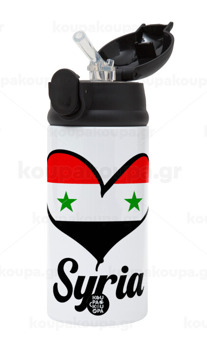 Syria flag, Children's hot water bottle, stainless steel, with safety straw, Black (360ml) BPA-FREE