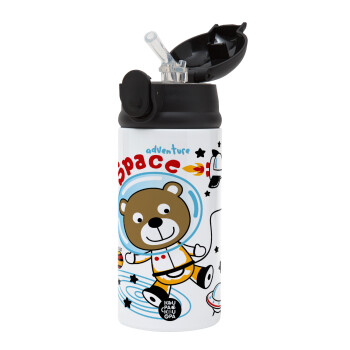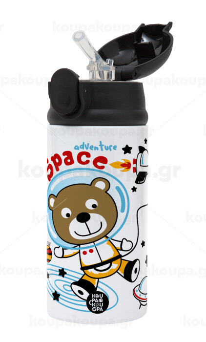 Kids Space, Children's hot water bottle, stainless steel, with safety straw, Black (360ml) BPA-FREE