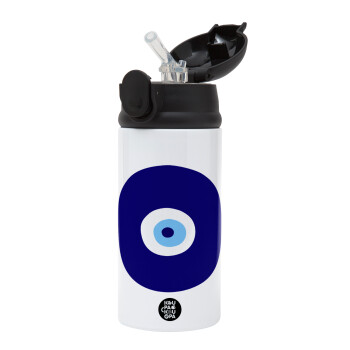 Χάντρα γαλαζιά, Children's hot water bottle, stainless steel, with safety straw, Black (360ml) BPA-FREE