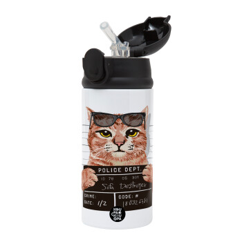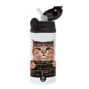 Cool cat, Children's hot water bottle, stainless steel, with safety straw, Black (360ml) BPA-FREE