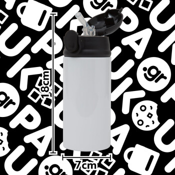 Warning, beware of Dog, Children's hot water bottle, stainless steel, with safety straw, Black (360ml) BPA-FREE