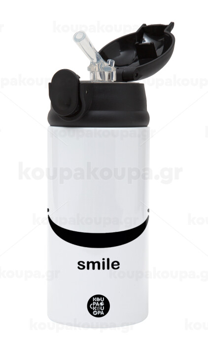Smile!!!, Children's hot water bottle, stainless steel, with safety straw, Black (360ml) BPA-FREE