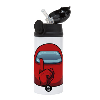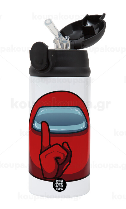 Among US, Children's hot water bottle, stainless steel, with safety straw, Black (360ml) BPA-FREE