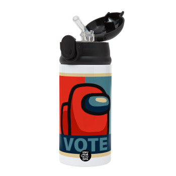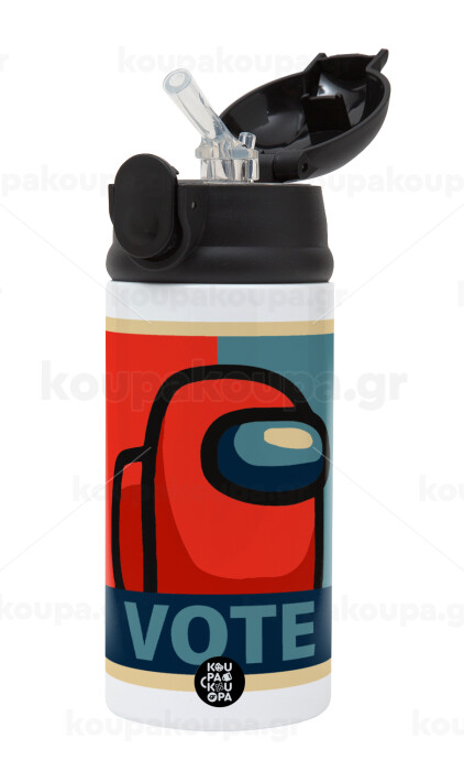Among US VOTE, Children's hot water bottle, stainless steel, with safety straw, Black (360ml) BPA-FREE