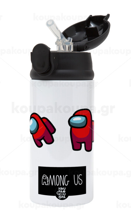 Among US, Children's hot water bottle, stainless steel, with safety straw, Black (360ml) BPA-FREE