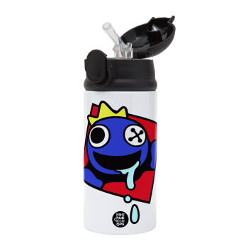 Blue, Rainbow friends, Children's hot water bottle, stainless steel, with safety straw, Black (360ml) BPA-FREE