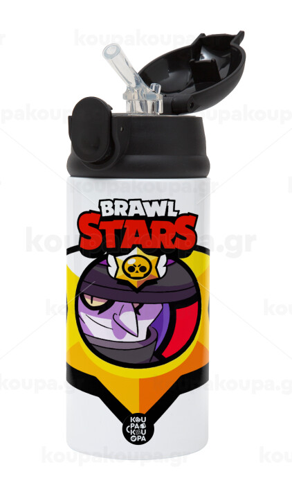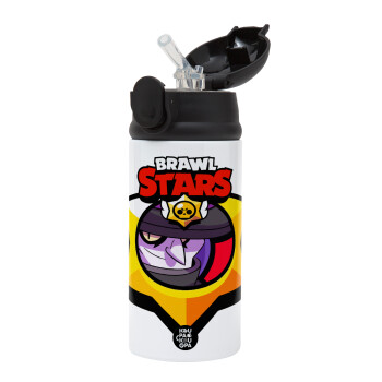 Brawl Stars Mortis, Children's hot water bottle, stainless steel, with safety straw, Black (360ml) BPA-FREE