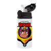 Brawl Stars Shelly, Children's hot water bottle, stainless steel, with safety straw, Black (360ml) BPA-FREE